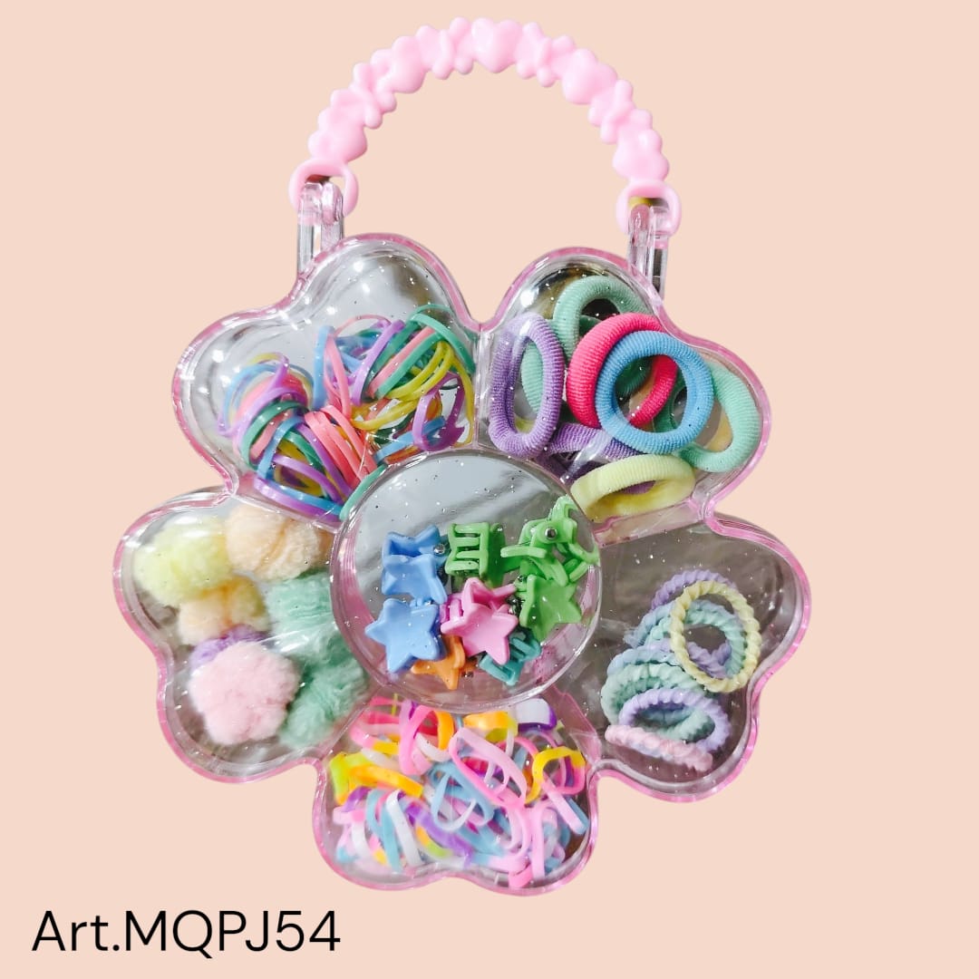 🧸 Tipo cartera de mano – ¡El packaging que también es accesorio!Presentamos la edición más canchera y original de Kandy Beautiful: un set que incluye **una colita de silicona + una mini colita de toalla**, todo dentro de un **envase de acrílico transparente con forma de FLOR y manijita tipo cartera de mano**. Sí, se puede llevar como cartera, monedero . Y encima trae colitas.